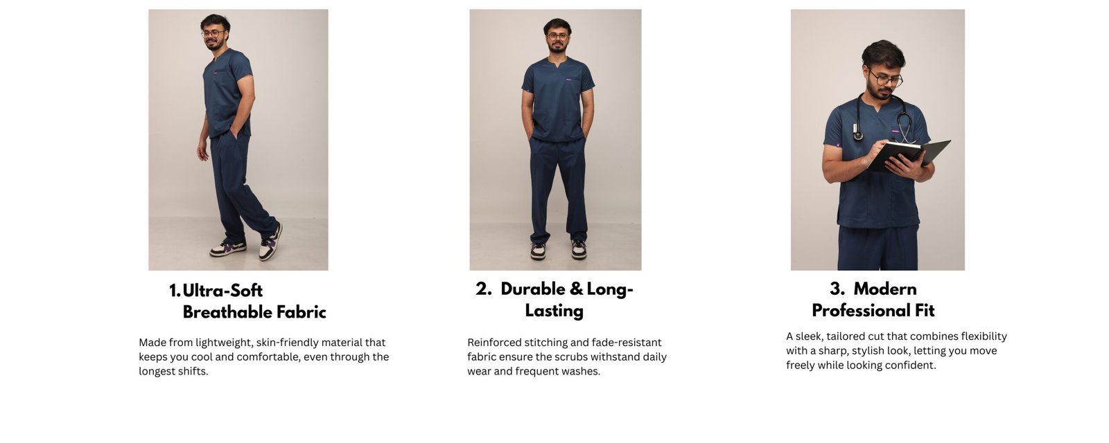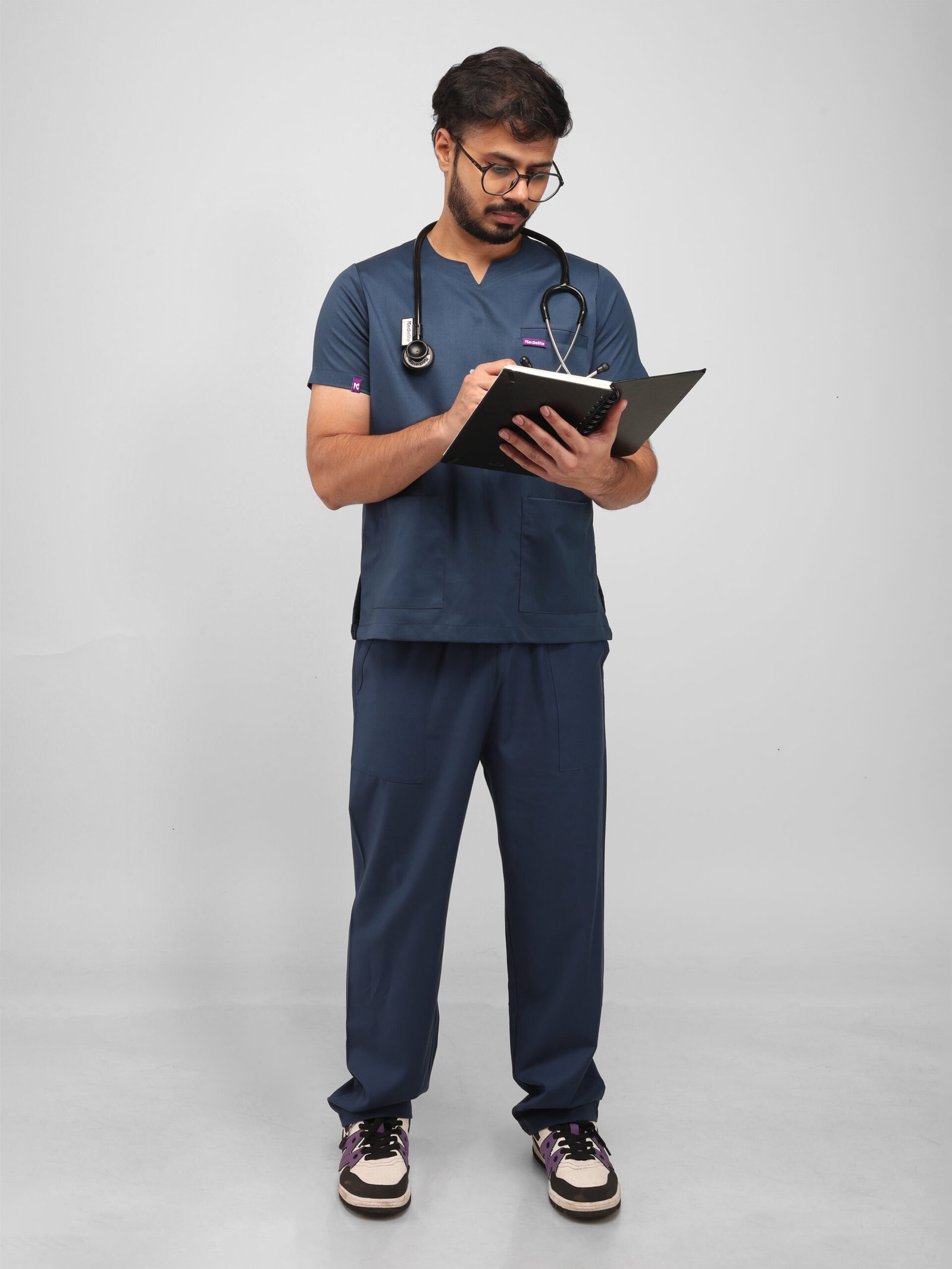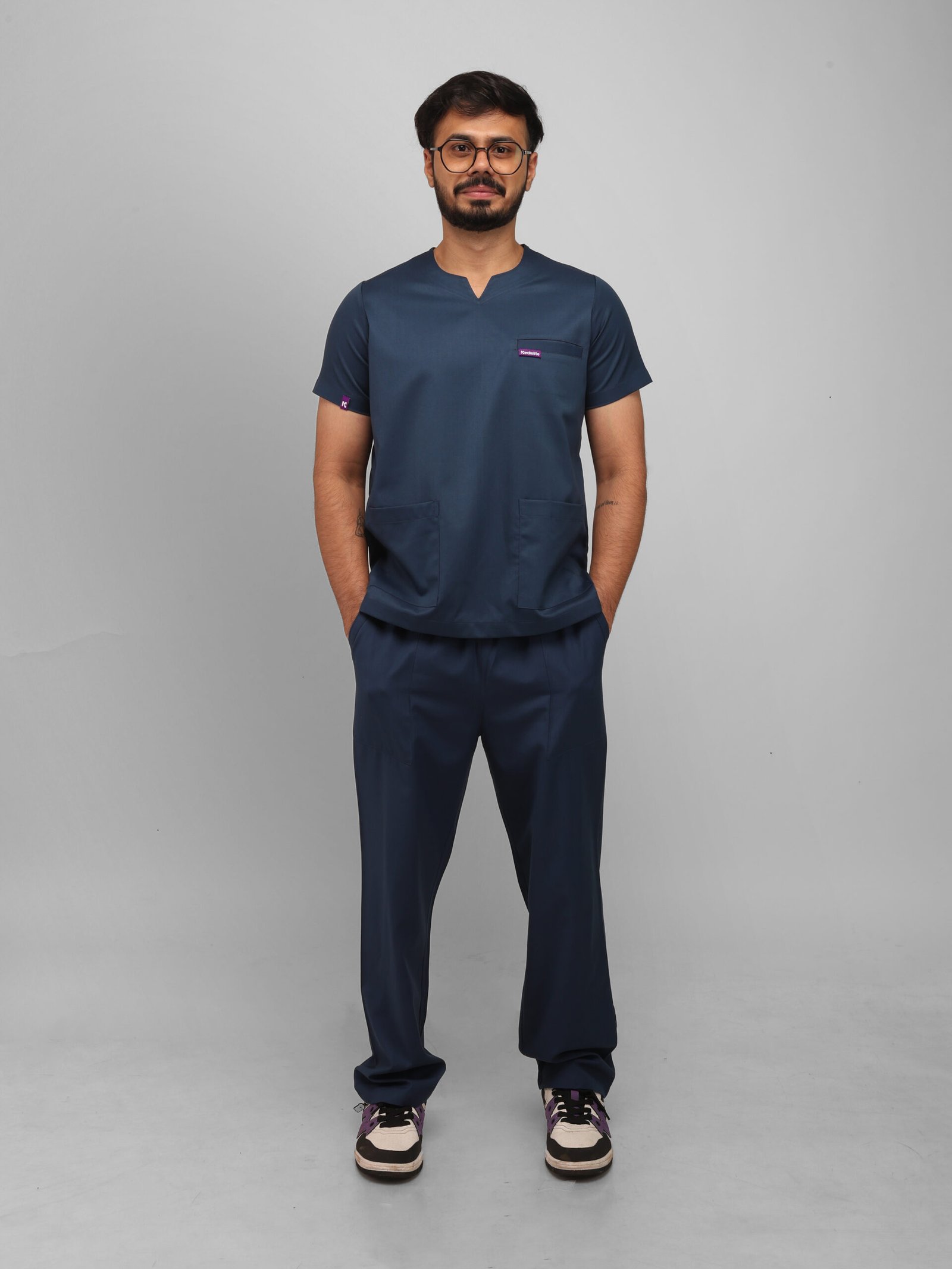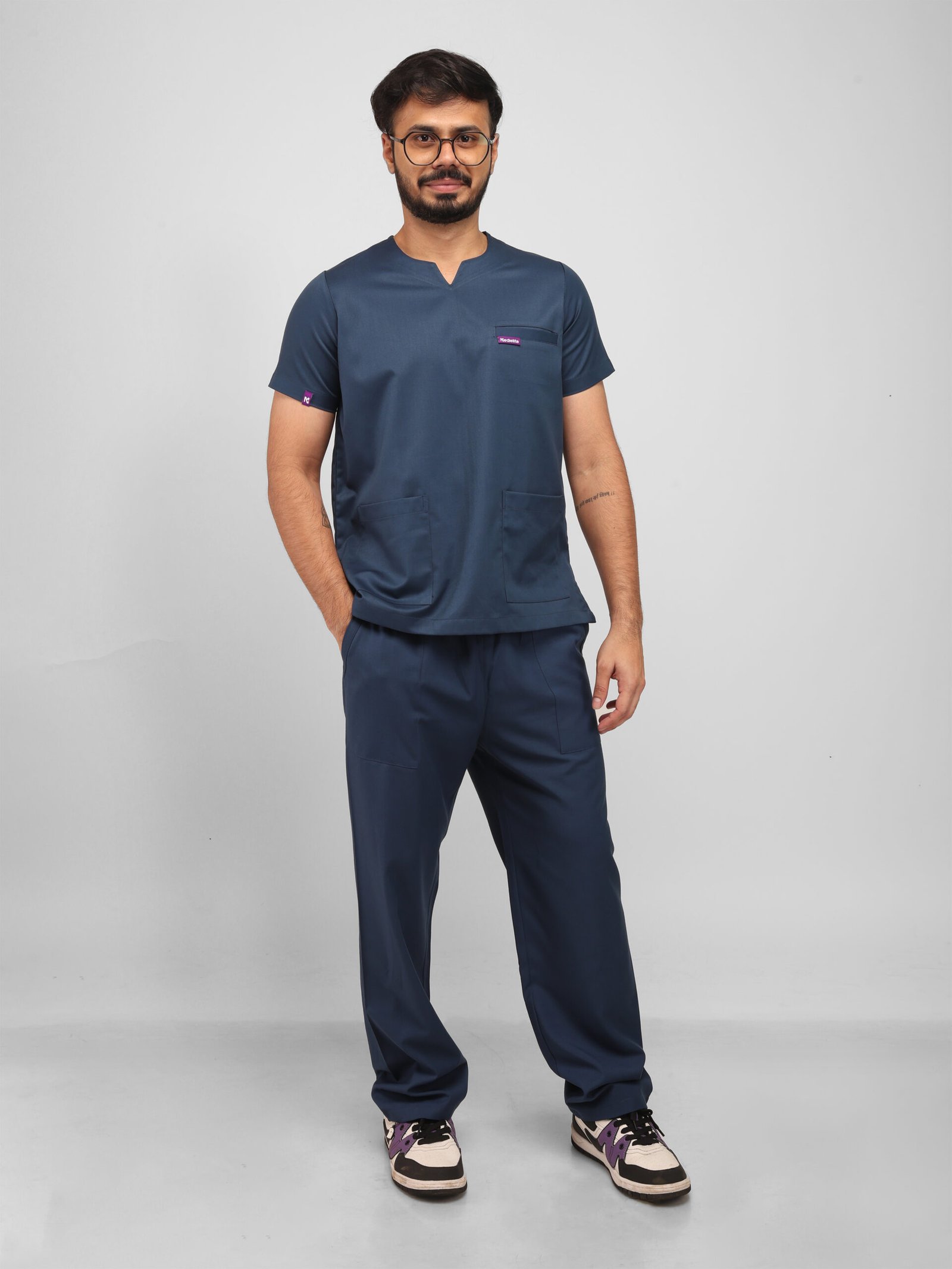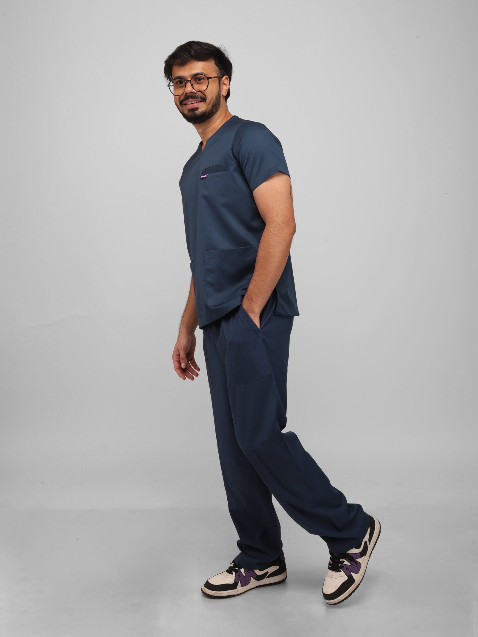 This athletic scrub set is useful with class basic. Because of its modern round slit neck design, which provides the ideal depth, you can run, bend, and move freely without being distracted. There is enough room for all of your necessities in the five roomy pockets. Because it is made of breathable, comfy fabric, it is ideal for long shifts and keeps you relaxed while maintaining a polished appearance throughout the day.
