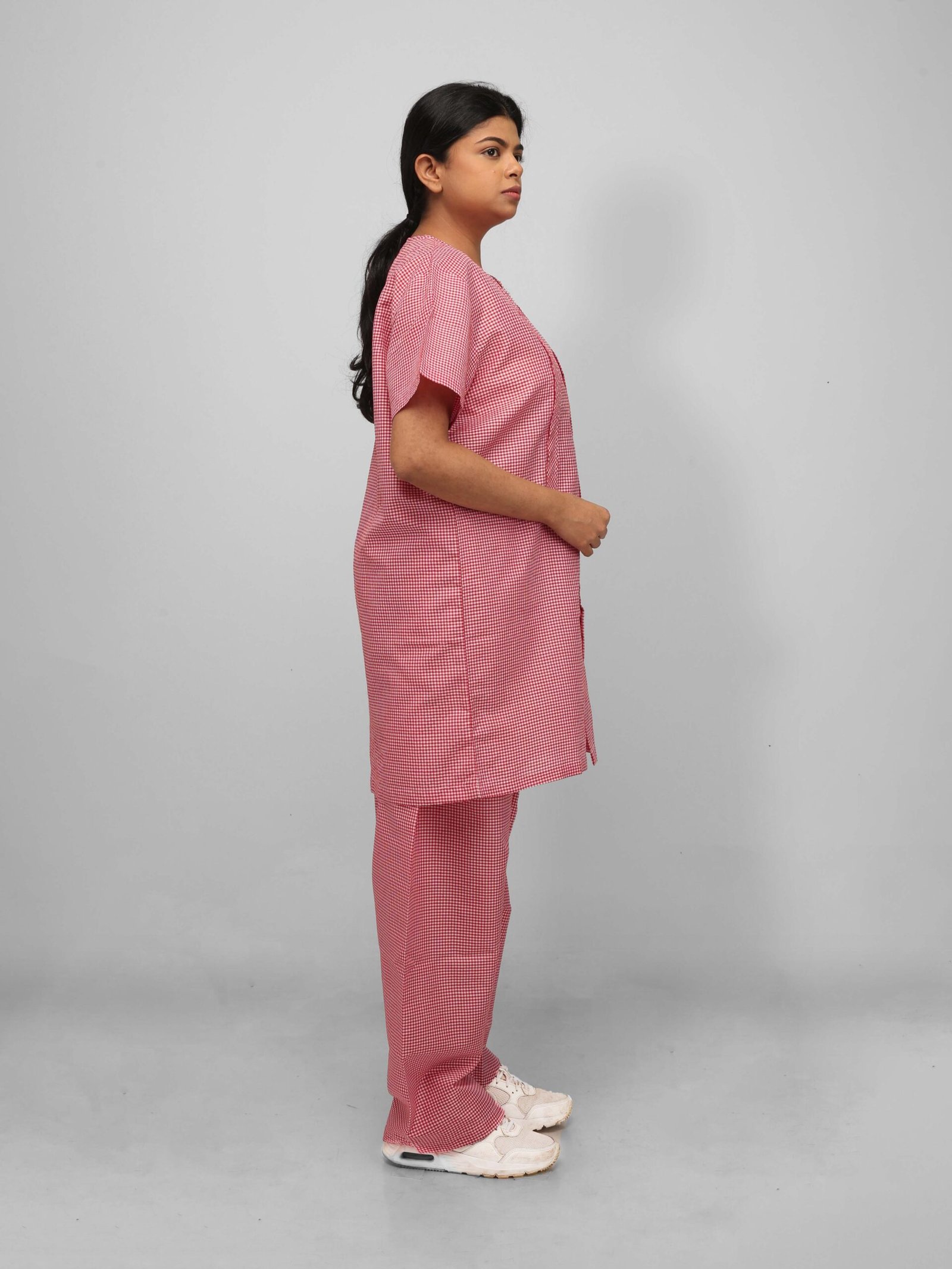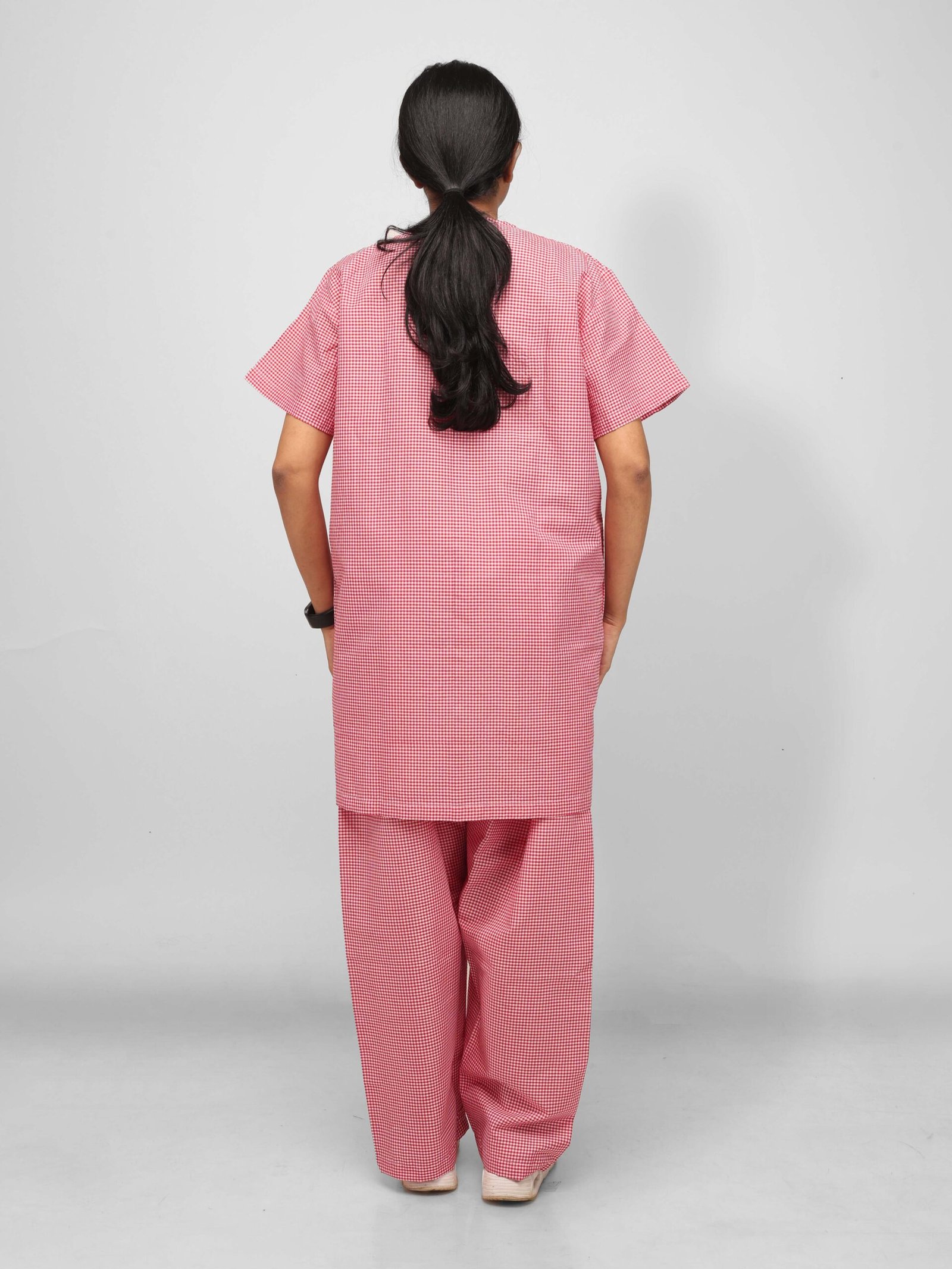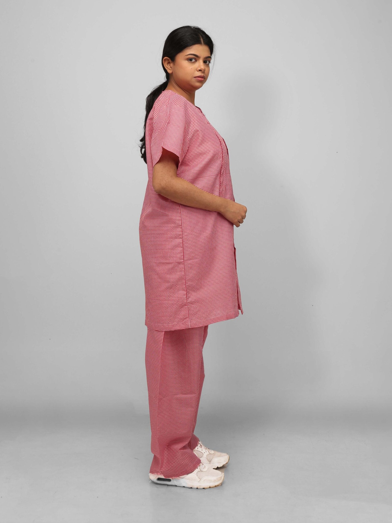 This female patient feeding top and bottom set is made from soft, breathable pure cotton fabric to ensure comfort throughout the day. The top features a round neck, short sleeves, and convenient feeding zippers for practicality, while the matching bottoms offer a relaxed fit for ease of movement. Lightweight and comfortable, this set is ideal for hospital stays, recovery periods, nursing needs, and general medical care settings—combining functionality with all-day comfort.