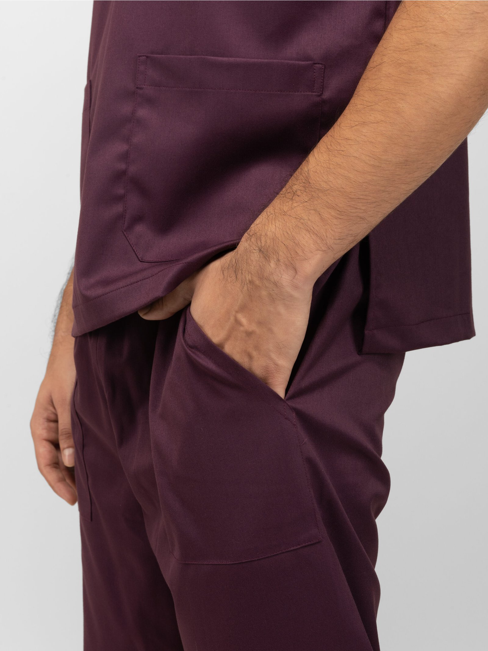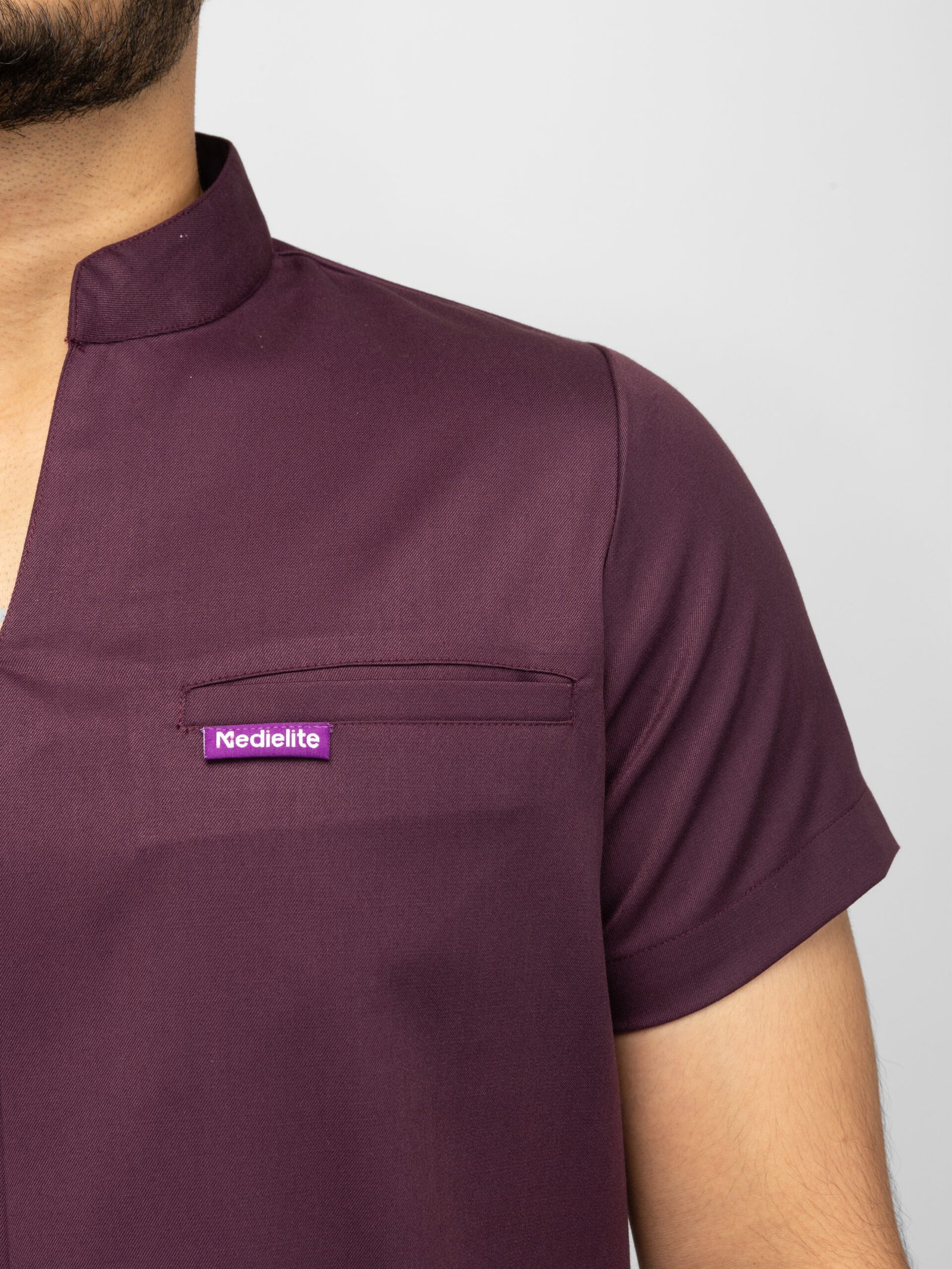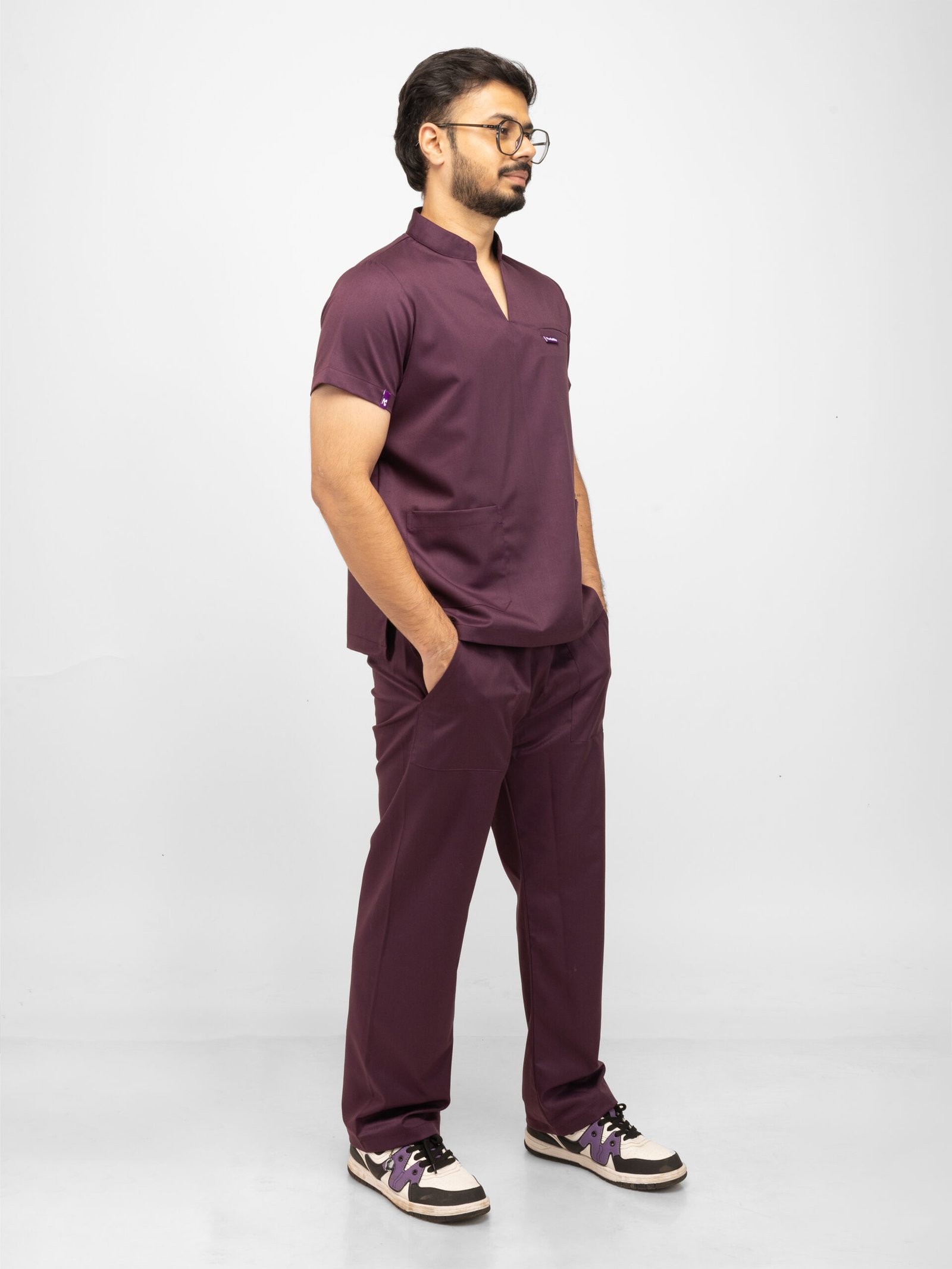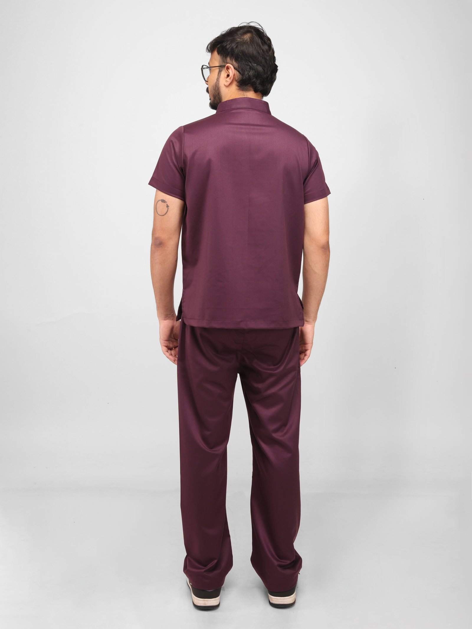 Maroon Mandarin Collar Short Sleeve Scrub Set