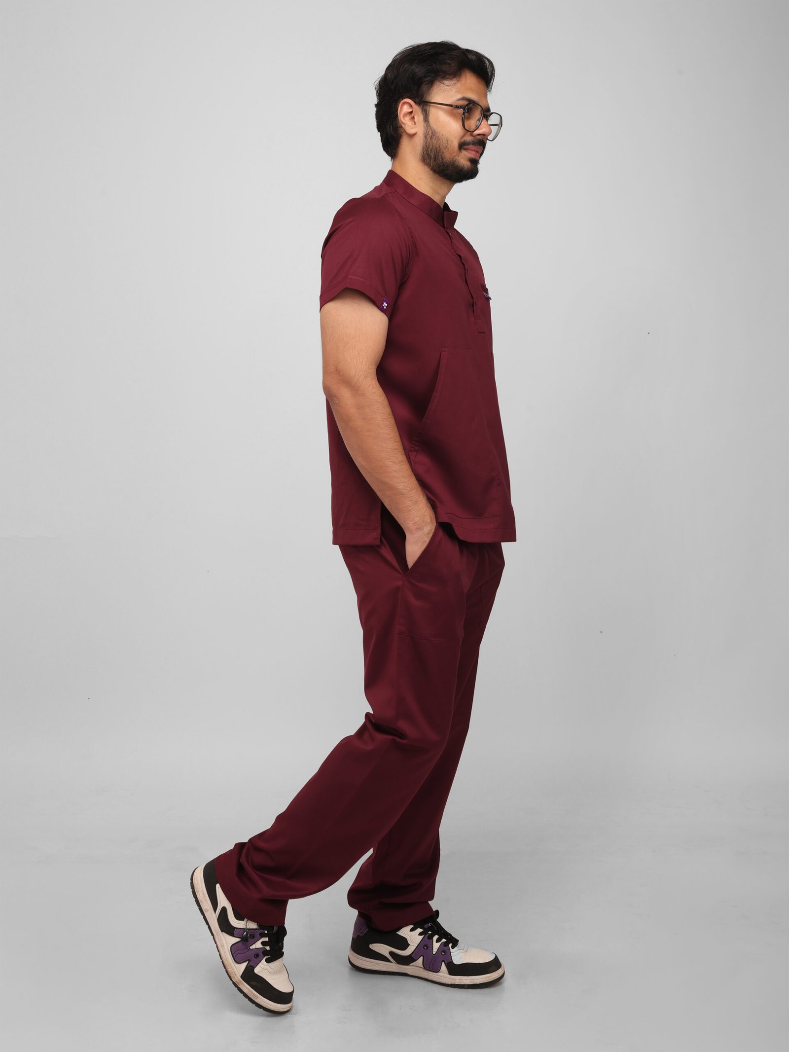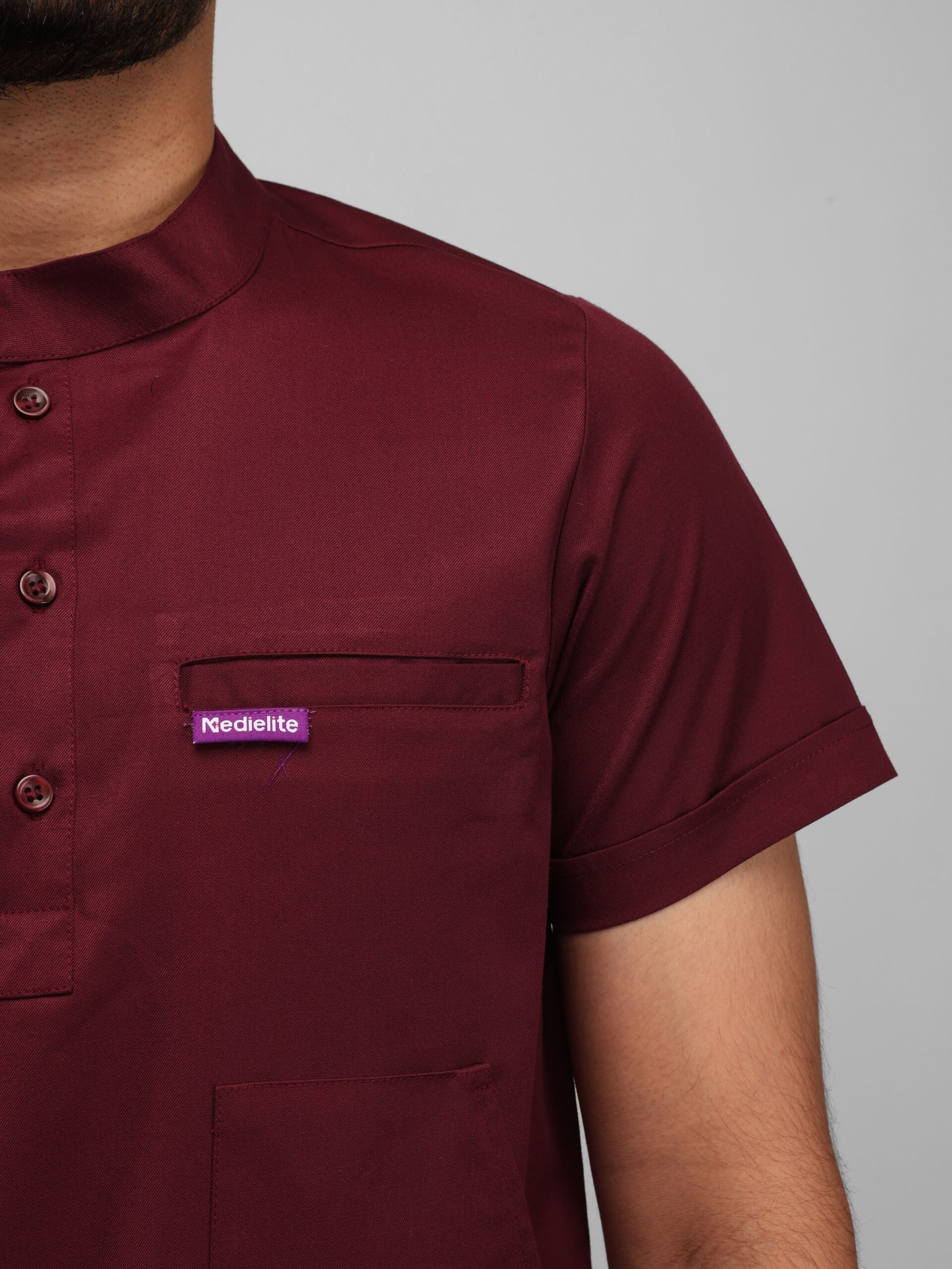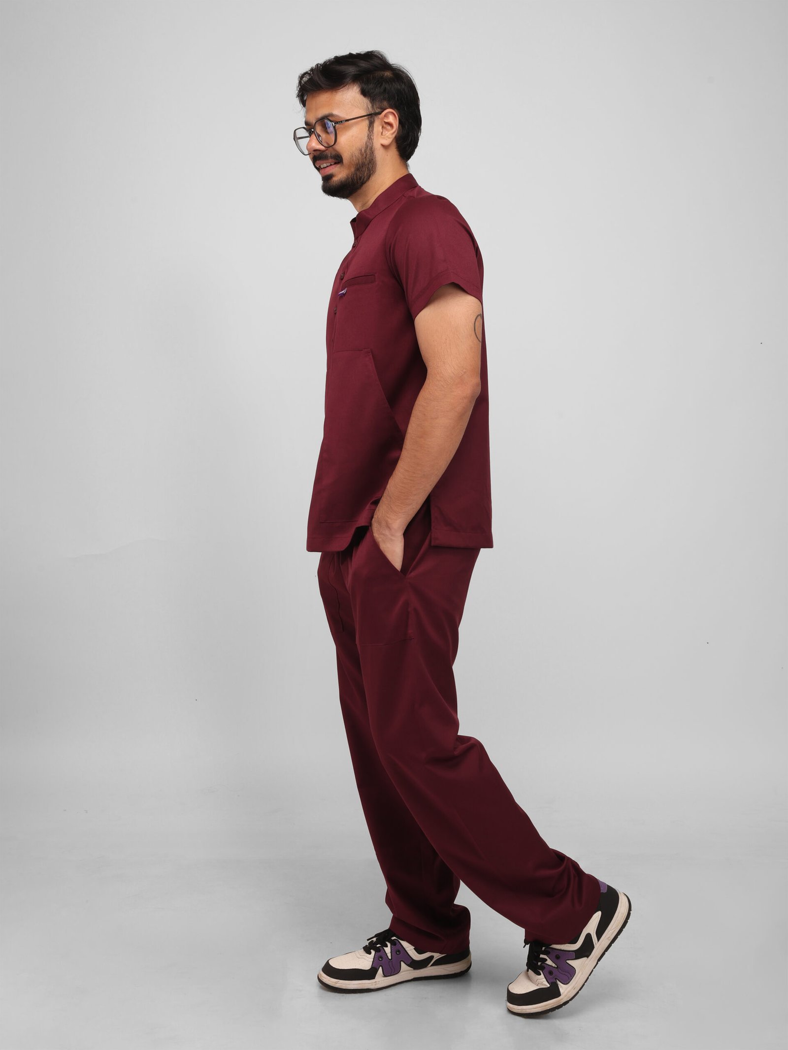 Maroon Mandarin Collar Short Sleeve Scrub Set