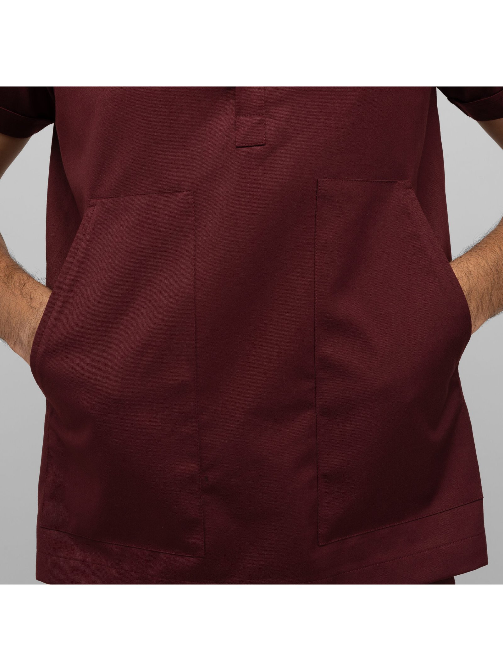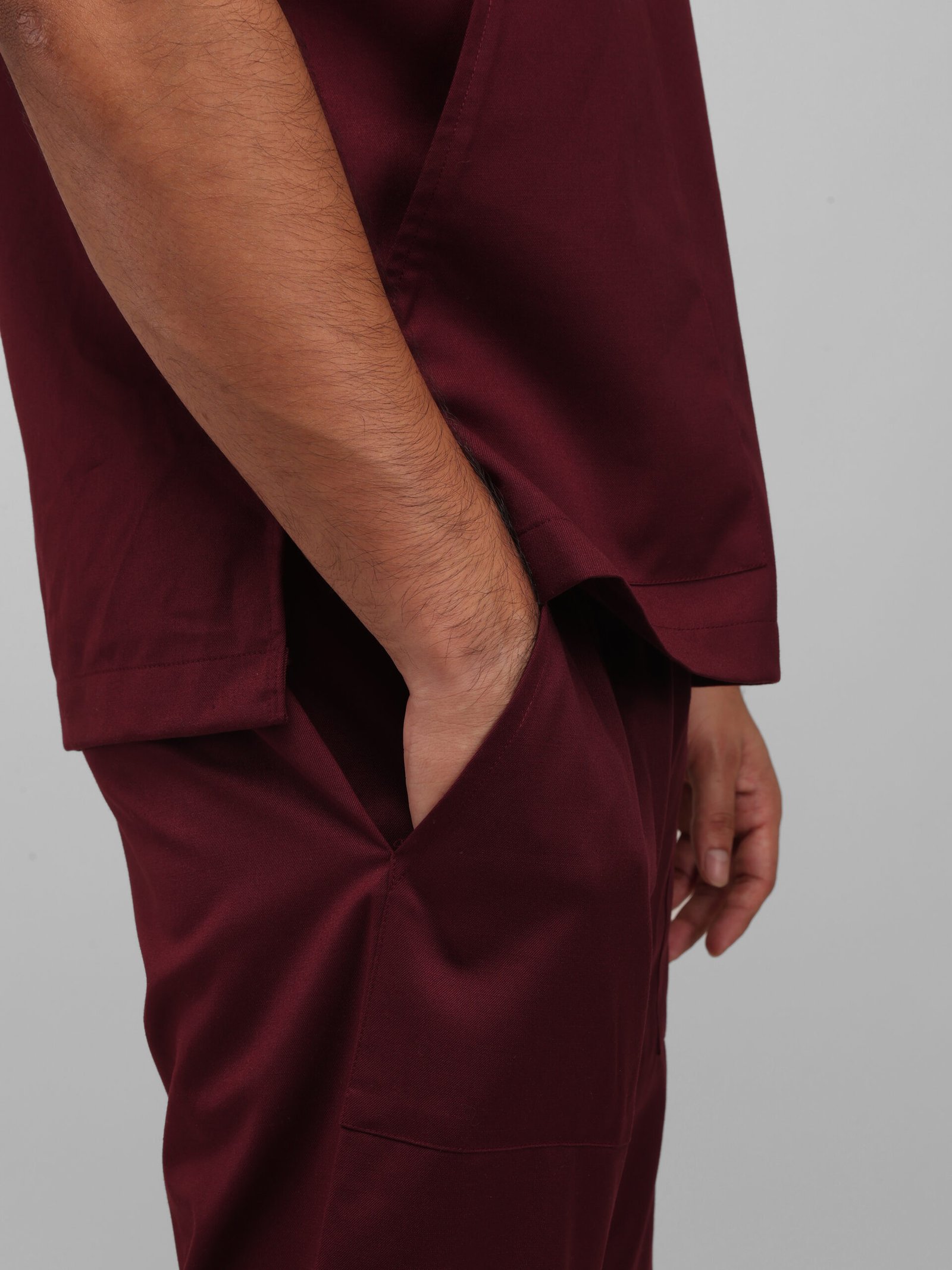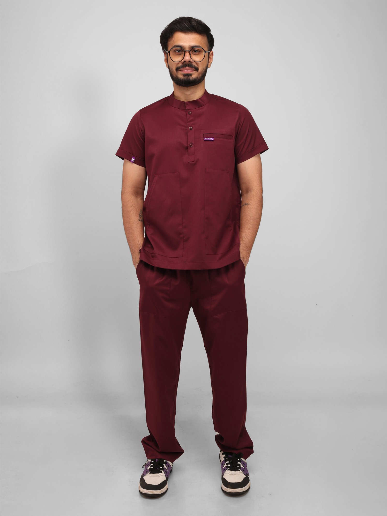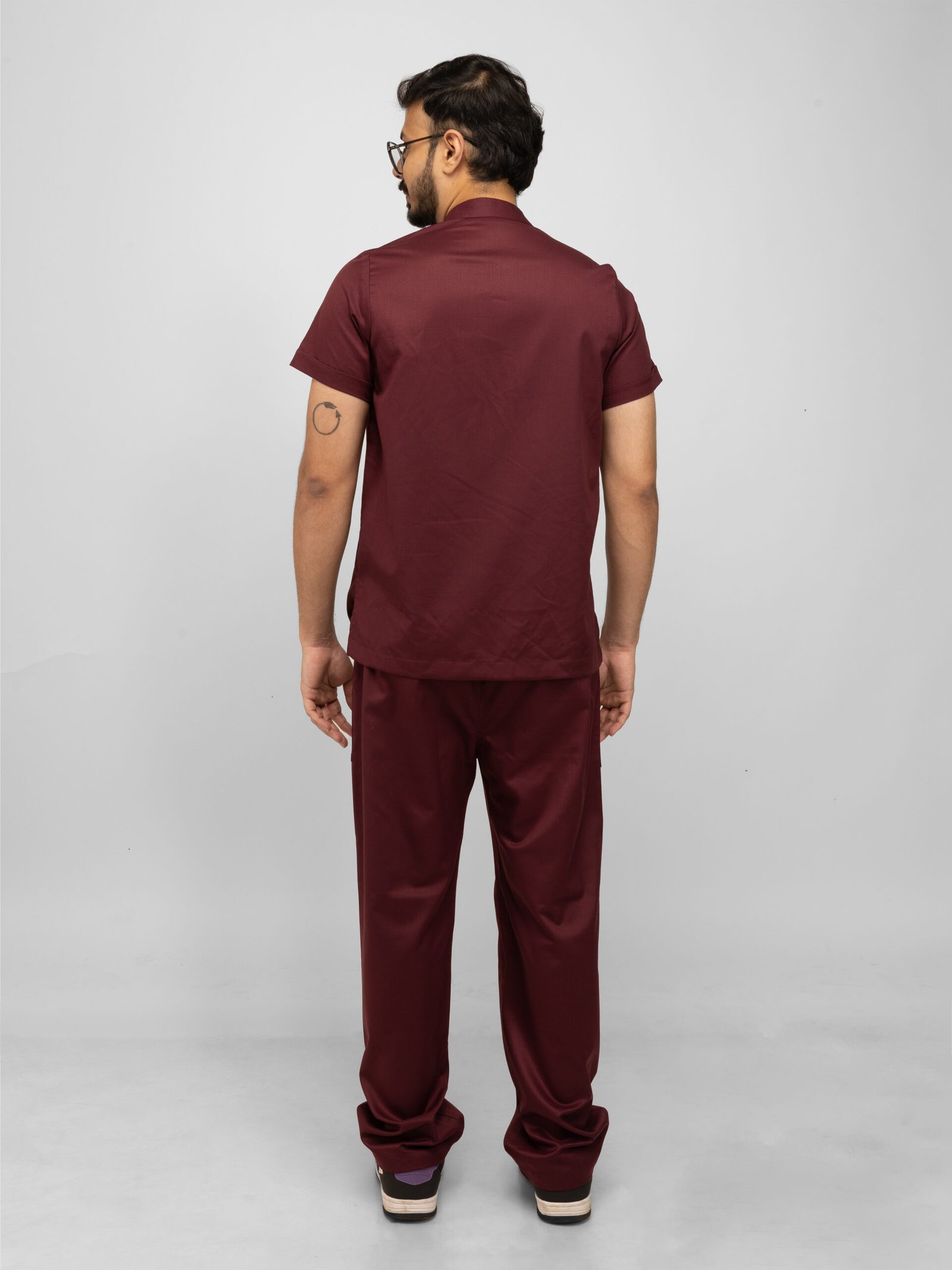 Maroon Mandarin Collar Short Sleeve Scrub Set