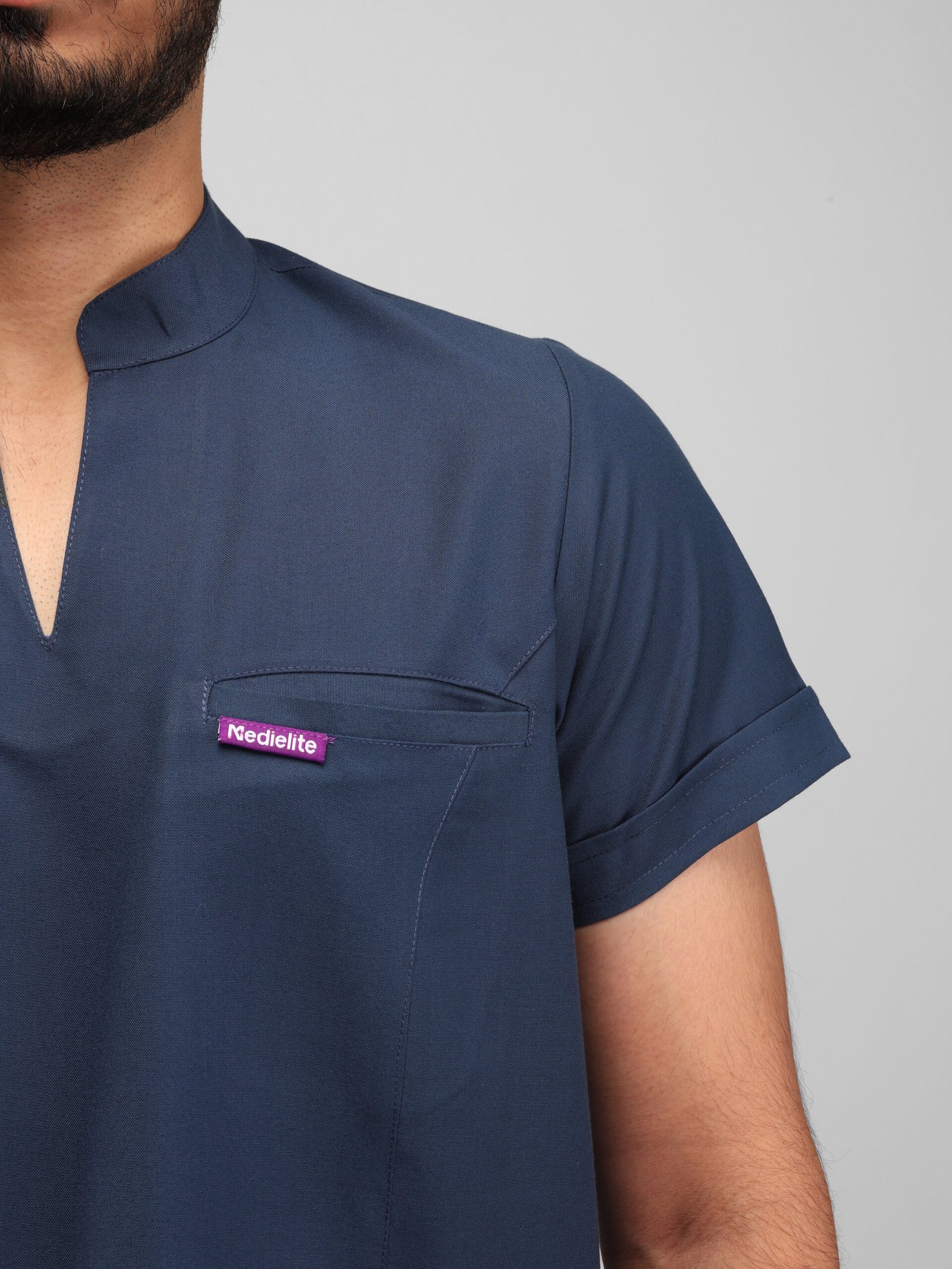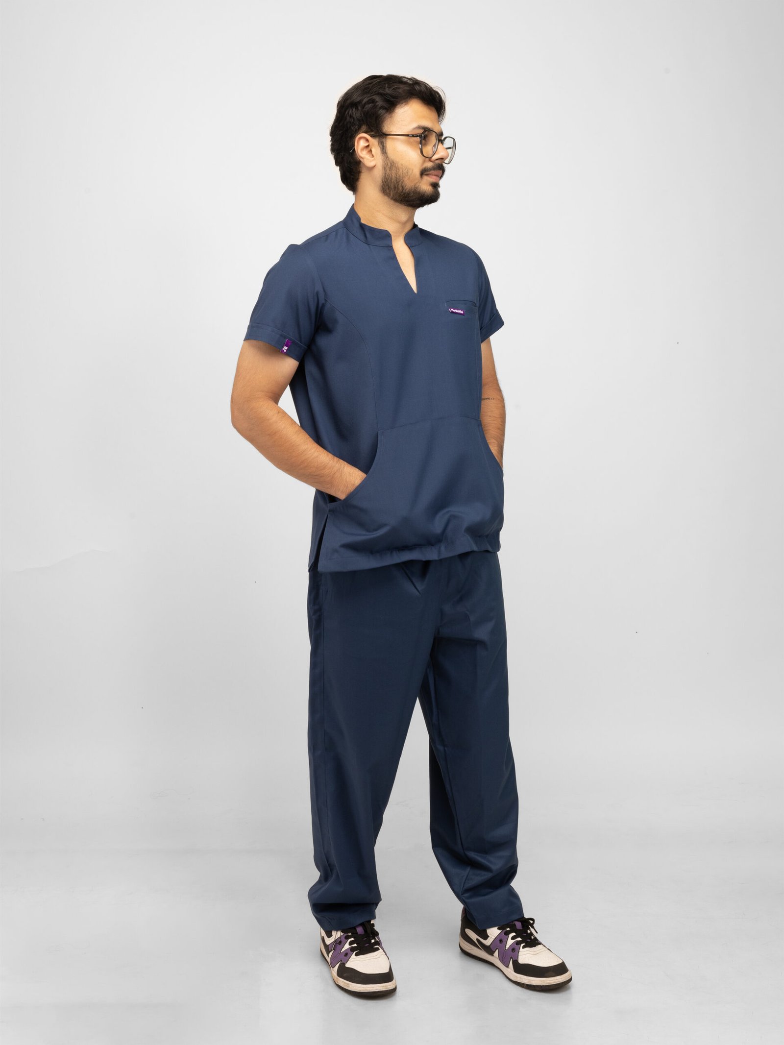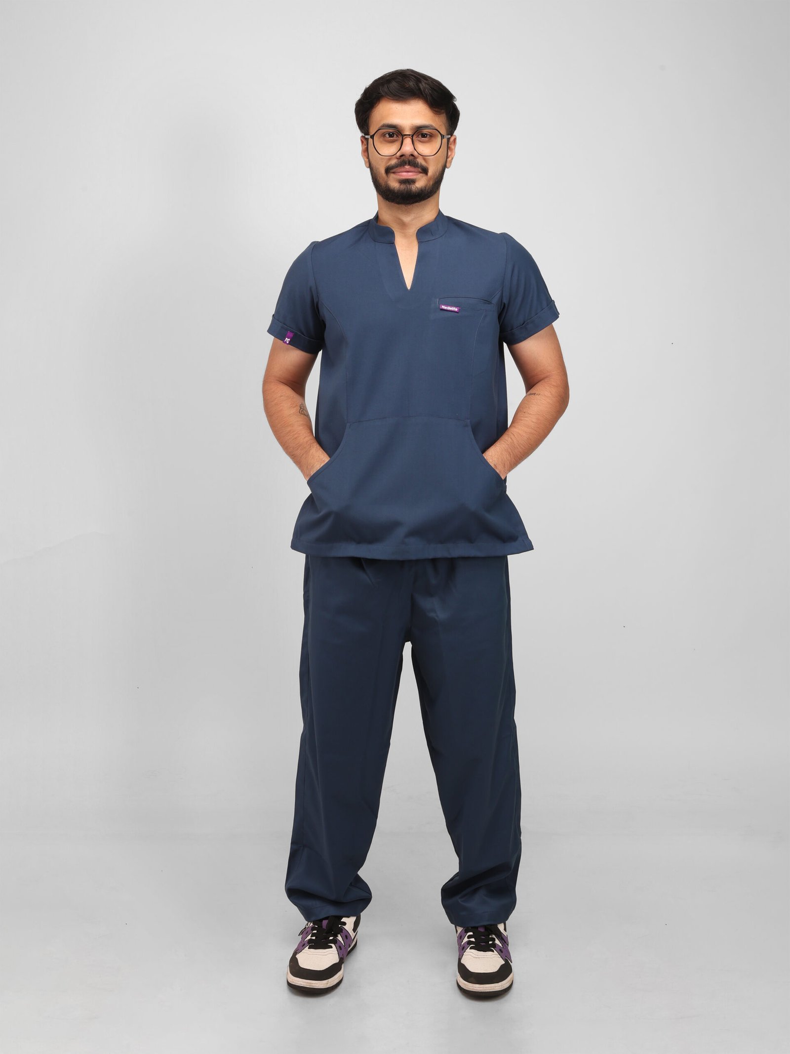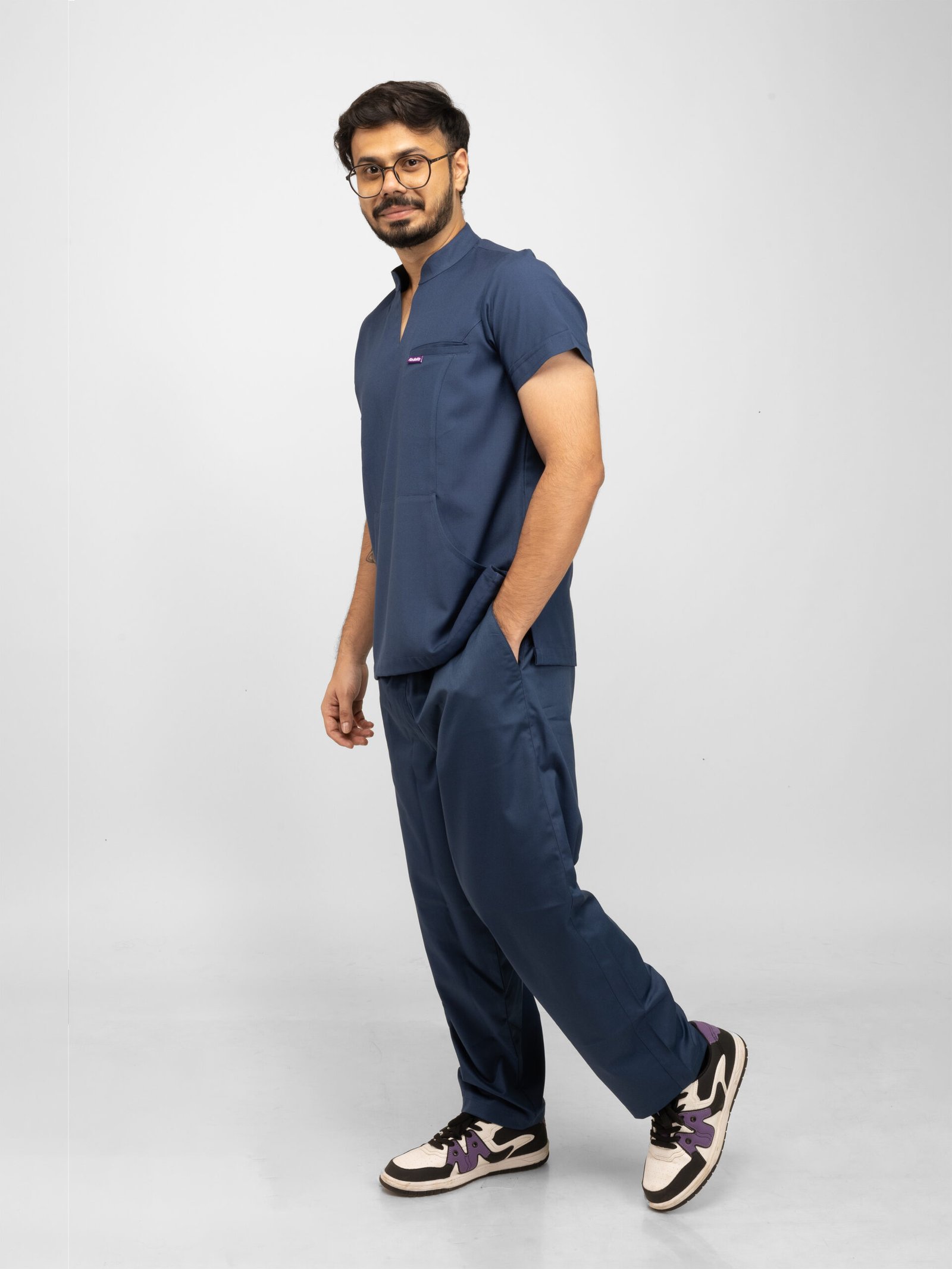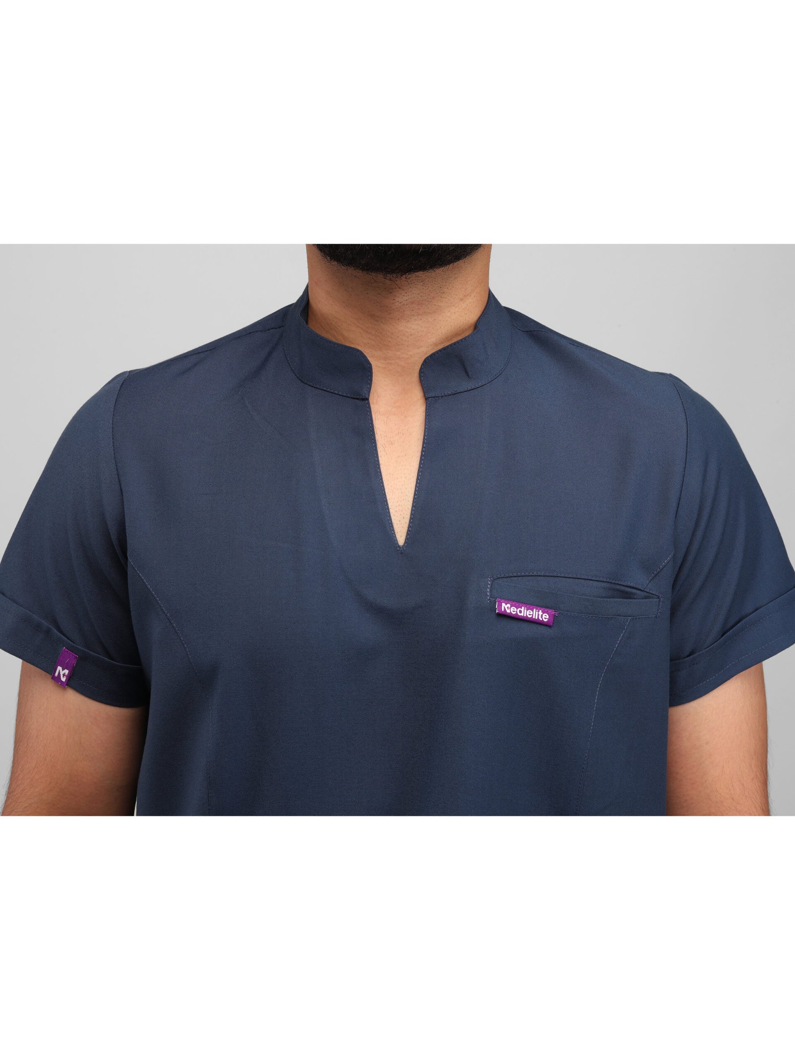 This scrub set brings style and comfort to the workplace for modern medical professionals. Designed with a chic mandarin collar and subtle slit, short sleeves for easy movement, and five practical pockets for everyday essentials, it combines functionality with a polished look—proving that doctors can be stylish at work too.