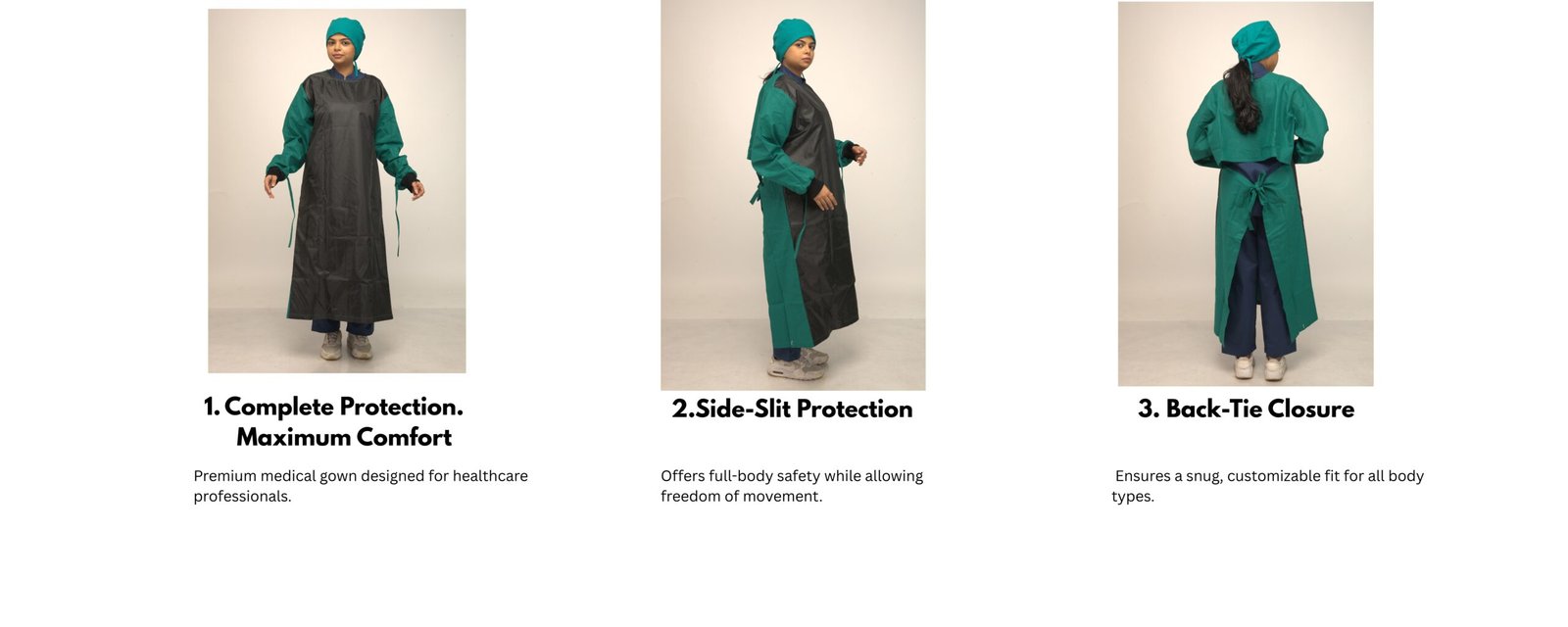 This unisex OT gown is made from a combination of durable casement fabric and protective plastic, ensuring both comfort and reliability during extended medical procedures. Designed with black ribbed cuffs for a secure fit, it offers ease of movement while maintaining complete coverage. The gown features adjustable back tie-up closures for a customizable fit, making it suitable for doctors, surgeons, and medical staff. Practical, functional, and easy to wear, it is an ideal choice for use in operation theatres and other healthcare settings.
