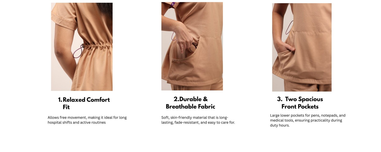This scrub set is designed for comfort and practicality in everyday medical work. Made from soft and flexible poly – lycra fabric, it allows easy movement throughout the day. The top features a classic V-neck design with two front pockets for essential storage, while the pants come with an adjustable elastic fit for all-day comfort. Ideal for healthcare professionals seeking both functionality and style.