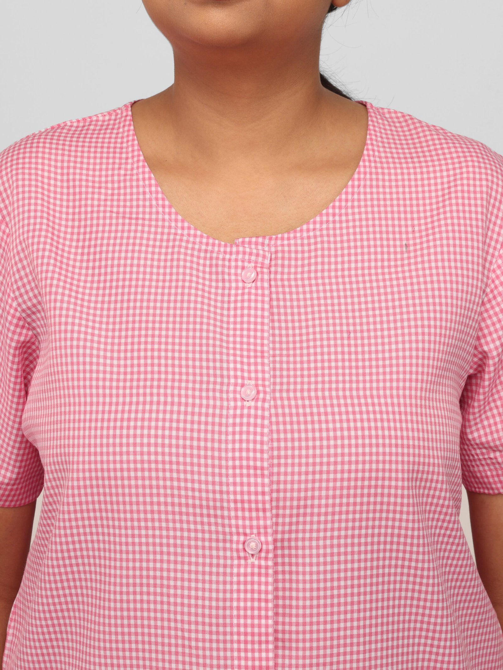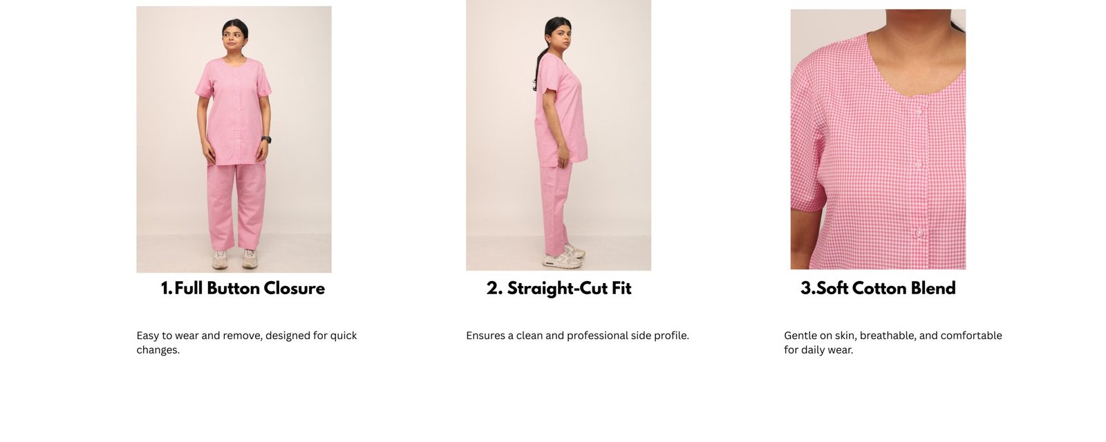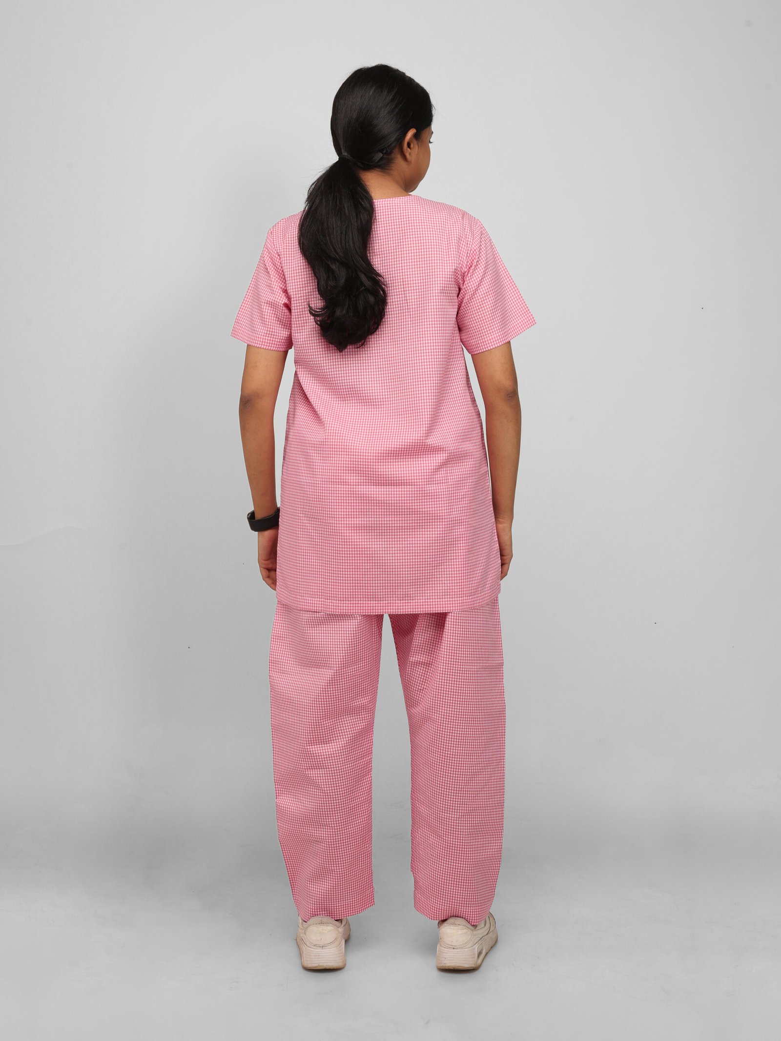 This female patient dress is made from soft, breathable pure cotton fabric, providing exceptional comfort for all-day wear. In a soothing pink hue, it features a relaxed round-neck design with short sleeves for ease of movement and convenience. The lightweight fabric and loose fit ensure maximum comfort, making it an ideal choice for hospital stays, recovery periods, and general medical care settings.