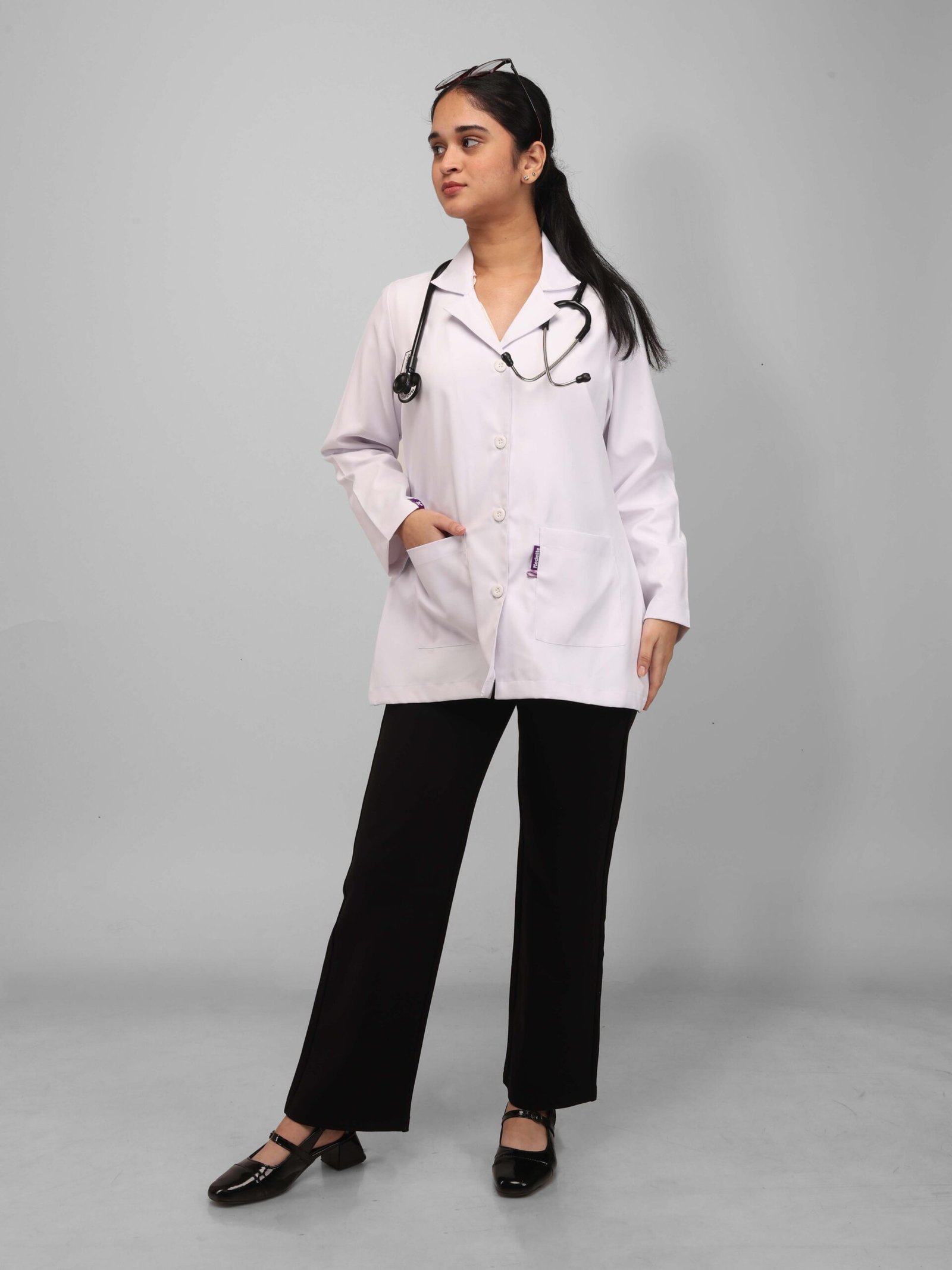 This classic doctor’s apron is tailored for comfort, durability, and a polished professional look. Made from soft, breathable fabric, it ensures ease of movement during long hours. Featuring Full sleeves for added coverage and two spacious pockets for essential storage, this apron is designed to keep you comfortable and prepared throughout your workday.